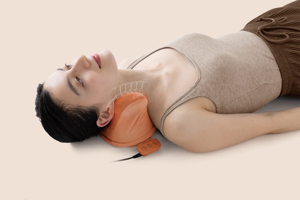 [アテックス]首の凝りをほぐして温めてくれるマッサージャー発売! ストレッチしながらマッサーをしてくれるマッサージピロー