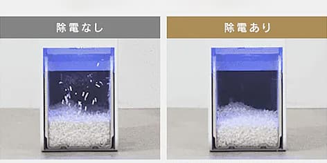 さらに、独自機能の「除電クリーンシステム」を搭載することで、ダストボックスの帯電量を抑制することが可能となり、細断くずの散乱を最小限に防いで、ごみ捨て時の片付けの手間を軽減できるようになっている。細断サイズはマイクロクロスカットとクロスカットの2種類を用意しており、用途に合わせて選択できるようになっている。