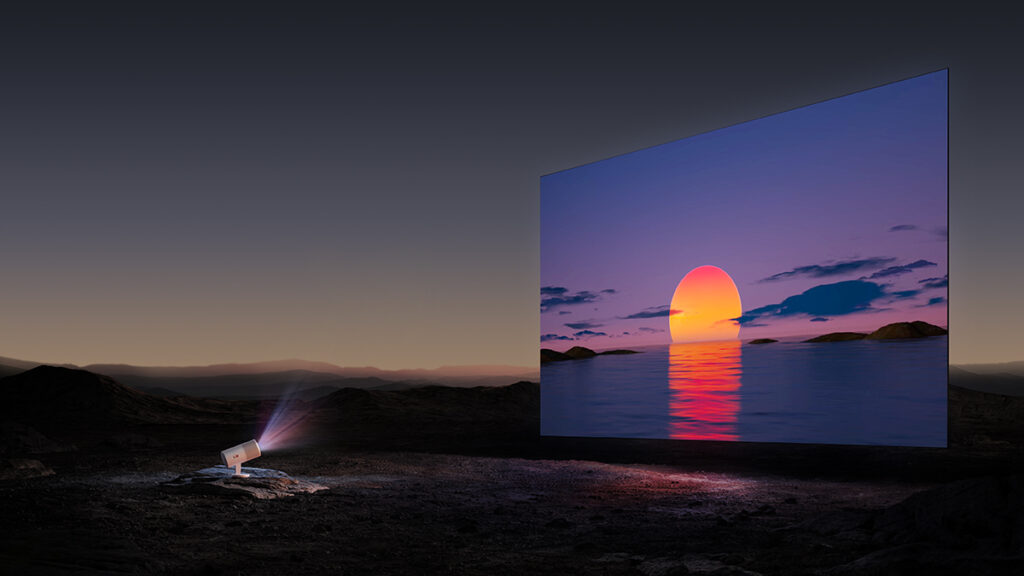 本体の重さが約1.3㎏と、軽量設計になっていることもあり、持ち運びがラクにおこなえるのも一つの一つ。また、20,000mAhの大容量バッテリーを内蔵しているため、ワイヤレスの状態でも最大2.5時間、映像を投影することができる。
