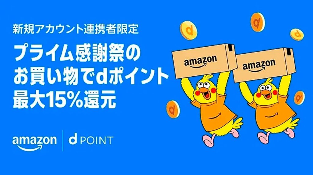 ●[新規アカウント連携者限定]プライム感謝祭のお買い物でdポイント最大15%還元