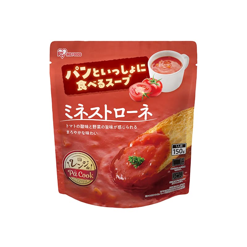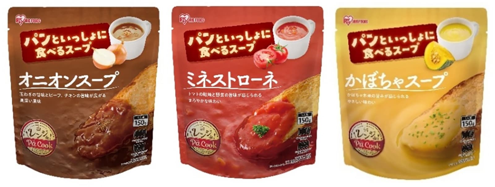 アイリスグループのアイリスフーズから、 パンとの食べ合わせがコンセプトの袋入りレトルトスープ「パンといっしょに食べるスープ」シリーズ3種類(オニオンスープ、ミネストローネ、かぼちゃスープ)を、昨日(12月12日)発売した。