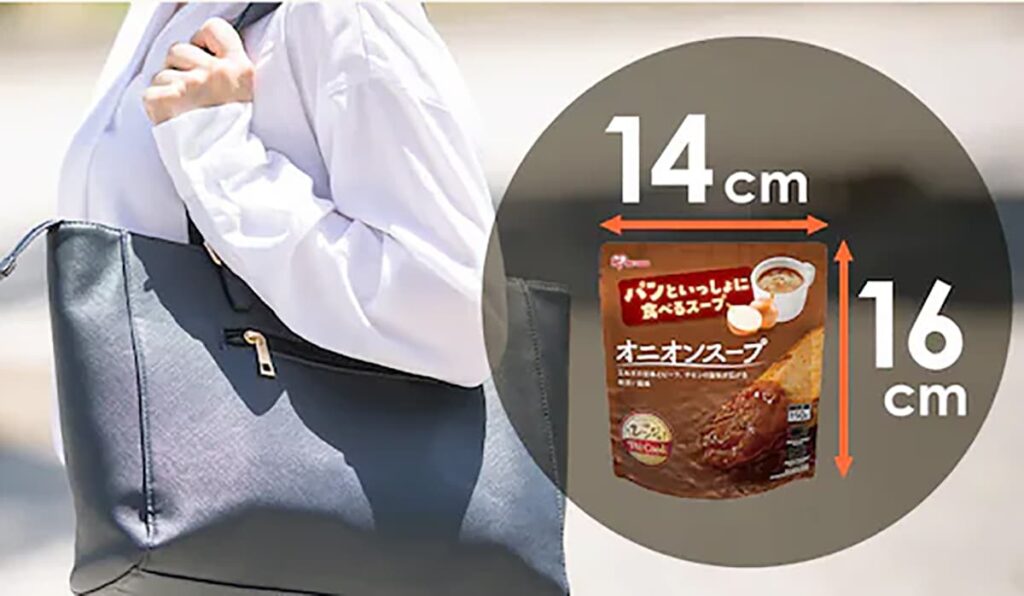 電子レンジで袋ごと温めるだけで食べられる手軽さと、1人前150gと一度に食べきりやすいサイズになっていることから、食事の副菜、あるいはメインとして、また、オフィスでの食事としてなど様々なシーンで活用できそうだ。パッケージのサイズは、横14cm、縦16cmとカバンに入れてもじゃまにならないサイズ感だから、ランチタイムにも重宝するだろう。