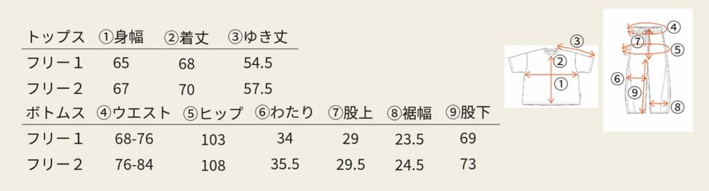 デザイン面では、部屋着・寝巻きでありながら、ゆとりのあるオーバーサイズのシルエットからそのまま外出しても違和感のないデザインに仕上げられている。サイズは、フリーサイズとなっているから、性別や年齢を問わず着られる(フリー1、2として用意している。)