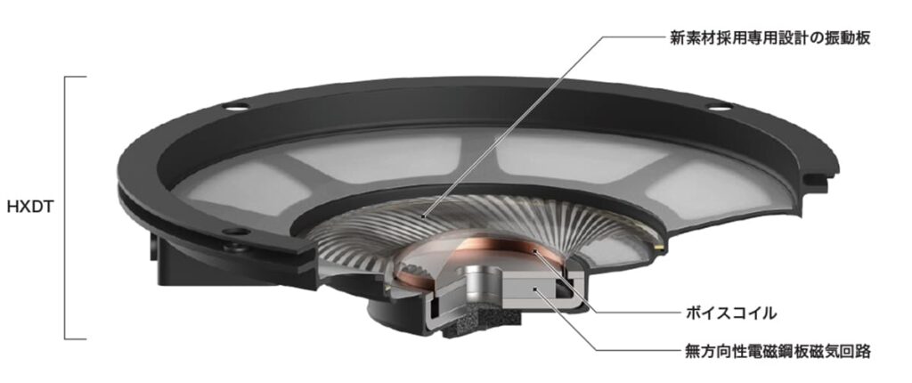 本製品の主な特徴としては、新開発の「HXDT(High-Concentricity X Dynamic Transducer)」を採用したことが挙げられる。設計から製造、組み込みまでを一貫して自社で行うことで、製造精度を向上させ、信号の正確な伝達と音の高い再現性を可能にしている。さらに、アルミニウムビレットを精密切削加工した“バッフル一体型”φ58mmドライバーの採用や、音の純度を高める「無方向性電磁鋼板」磁気回路、そして強力な駆動力を生み出す専用設計の空芯ボイスコイルなど、あらゆる要素にこだわりの設計が施されている。