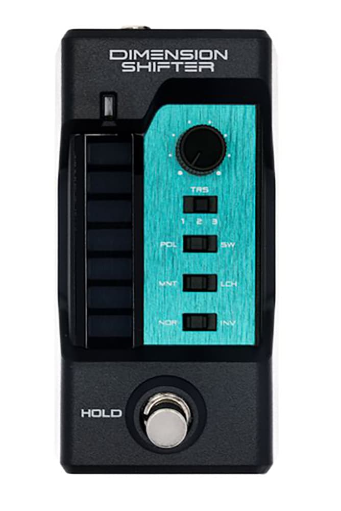今回発売する製品「DIMENSION SHIFTER」は、「直感的な操作で新しい音楽表現を可能にする」というコンセプトをより明確に伝えるため、「DIMENSION TRIPPER」より「DIMENSION SHIFTER」に名称を刷新している。本製品は、ギターストラップに装着することで、演奏中にエフェクターの操作ができる新しいタイプのエフェクトコントローラーとして発売することとなった。