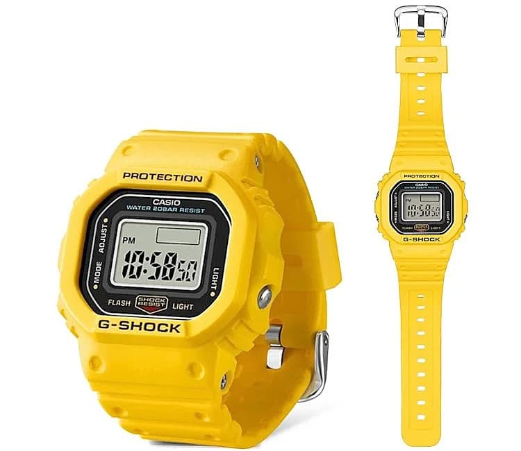 カラーはブラック(DWN-5600-1)、レッド(DWN-5600-4)、イエロー(DWN-5600-9)の3色展開。コレクションとして飾ることができるようなスペシャルパッケージが用意され、付属品として、"G-SHOCK"の「G」マークをかたどったディスプレイ用スタンドも同梱する。