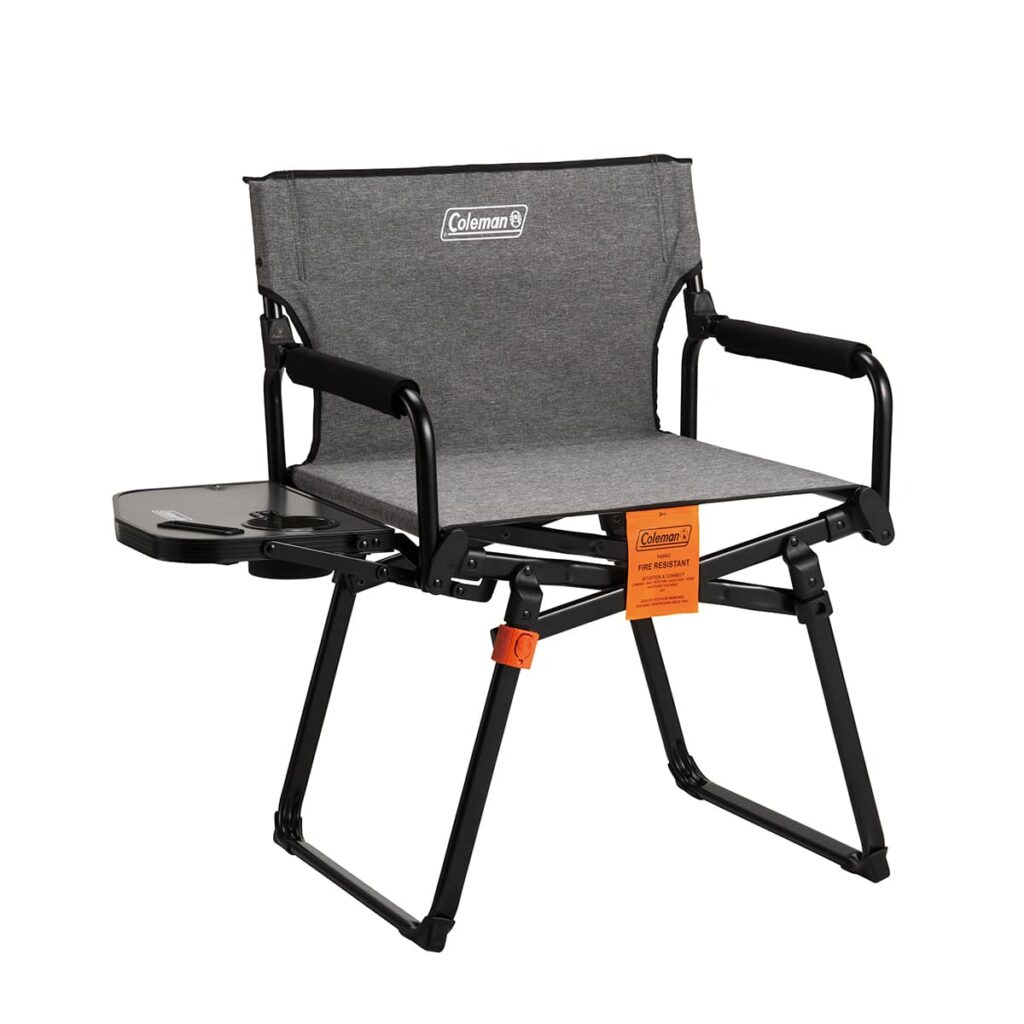 「デッキチェアNX」は、収納時のサイズを大幅にコンパクト化させることに成功したモデル。従来モデルと比較して、収納時の高さを約22cm(28%)コンパクト化させた上、サイドテーブルも収納可能な仕組みにしているのが特徴となっている。また、サイドテーブルには、ボトルやマグカップ用に加えて、スマートフォンが入るホルダーを追加するなど、収納性を向上させている。さらに、座面は、焚き火のときも安心して使うことができる難燃生地を採用しています。焚き火のときも安心して使うことができるように難燃生地を採用している。