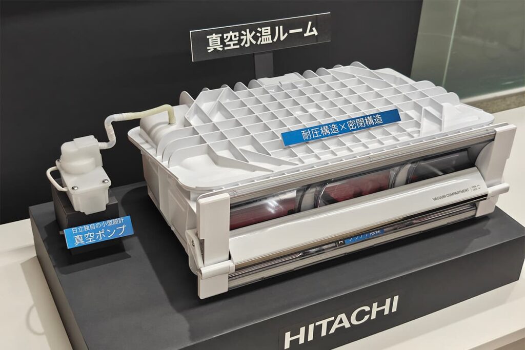 「真空氷温ルーム」は、小型設計真空ポンプでルーム内の空気を吸引し、約0.8気圧の真空環境を独自の技術で実現。さらに、食品に冷気を当てない間接冷却・密閉構造と約-1℃の氷温で保存することによって、食品の酸化や変色を抑えて鮮度よく保存してくれる。また、冷気の流入を防ぐことで、ラップなしでも食品の乾燥を抑えることも可能にしている。