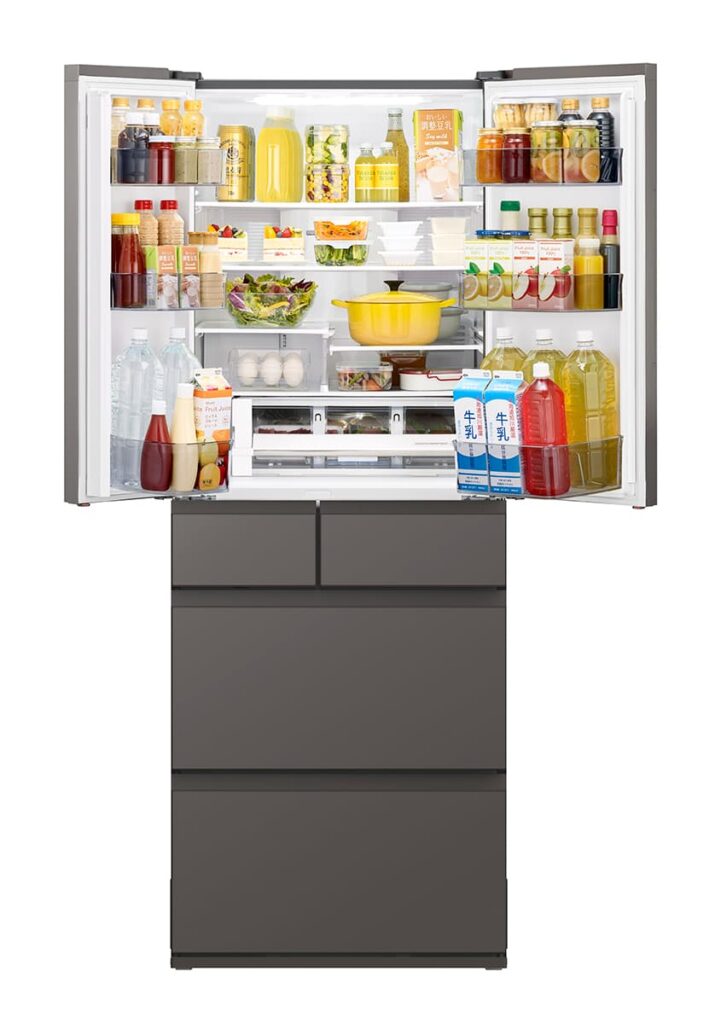 内容積617Lの「R-HZC62Y」の本体サイズは、幅685mm、奥行738mm、高さ1843mm、重さは、127㎏。℃開閉タイプは、フレンチドアタイプ。一方、内容積540Lの「R-HZC54Y」の本体サイズは、幅650mm、奥行699mm、高さ1843mm、重さは、118㎏。本体カラーは、いずれのモデルもチャコールグレーとナチュラルホワイトの2色を用意している。