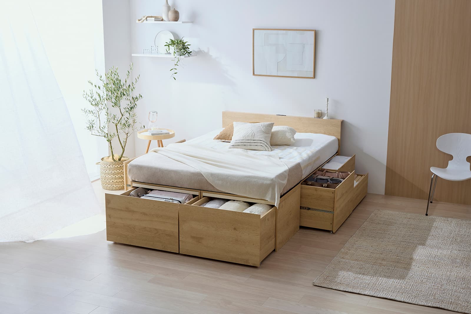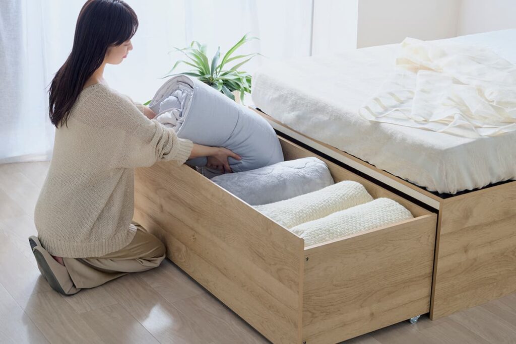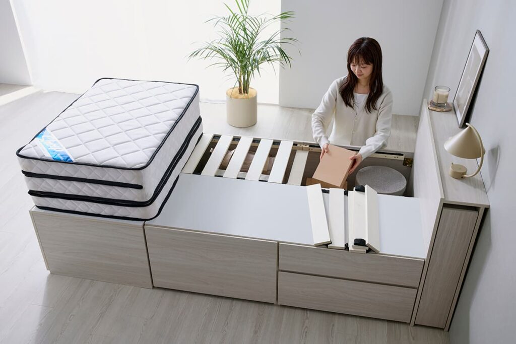 マットレスをすべて動かす必要もなくモノを取りだすこともできる