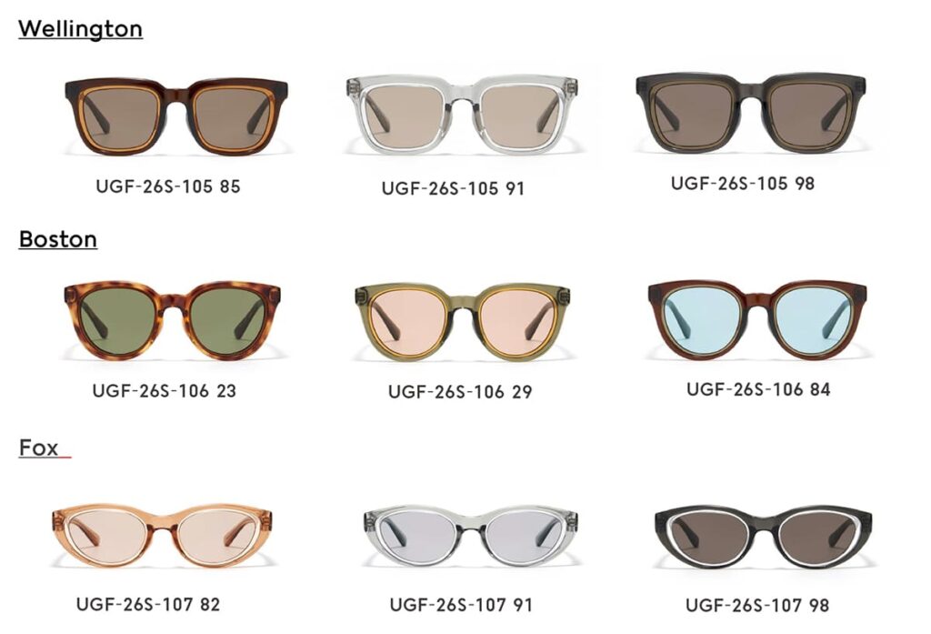 わずかなズレが、印象と表情を変え、⾒え⽅を変えるサングラス、コラボレーション第2弾のキーワードは「Parallax(視差)」。⾒る位置や⾓度の違いによって印象が変化する現象にフォーカスして、フレーム構造に意図的なズレを組み込むことで、新しい表情と奥⾏きを生み出している。二つのリムを重ねるような構造を採用し、フレームとレンズの間に異なるカラーを挟み込むことで、視覚的に二重のラインが浮かびあがるよう設計。このわずかなオフセットは単なる装飾にとどまらず、デザインの核となる重要な要素となっている。光の陰影によって、顔まわりに⾃然な⽴体感が生まれ、正面・横顔それぞれで異なる印象を演出する。ラインアップは「Wellington(ウエリントン)」、「Boston(ボストン)」、「Fox(フォックス)」の全3型9種となっている。サングラスを入れて持ち運べるケースも付属する。