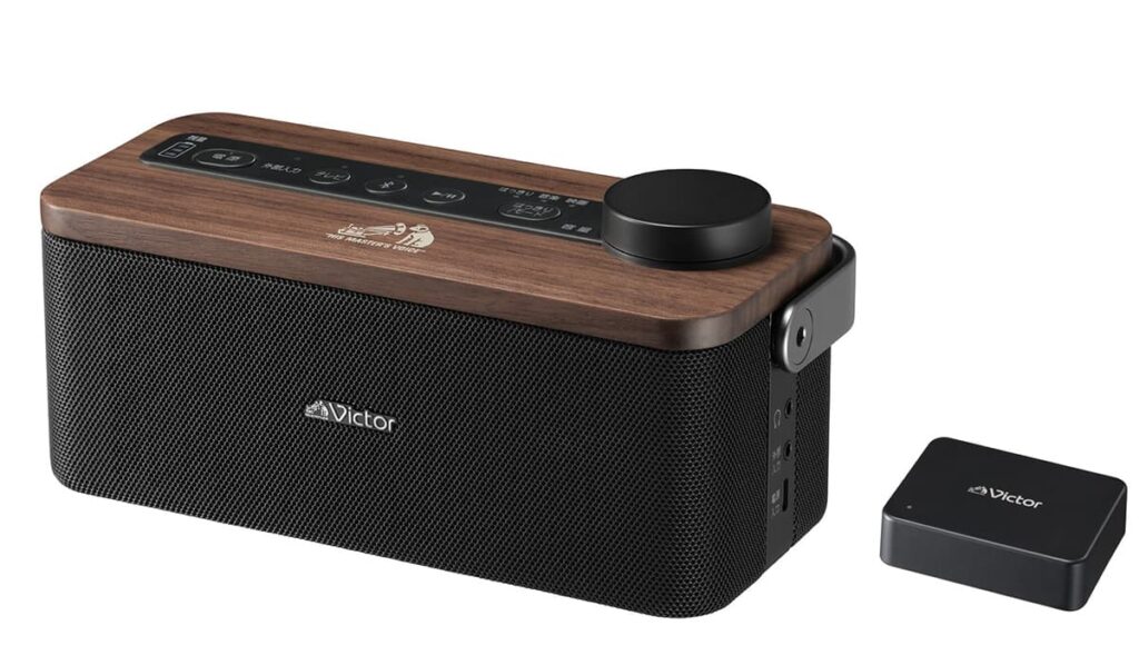 テレビの音声だけでなく、Bluetooth接続によるスマートフォンやタブレットの音楽も高音質で楽しめるのも特徴だ。テレビ音声とBluetoothはワンタッチで切り替えられる。インテリアになじむようにデザインも考慮されており、スピーカー部の天板にはインテリアと相性の良い天然木(ウォルナット)を配置し、ハンドル部にはアルミダイキャストを採用。また、Victorブランドを象徴する「犬のマーク」をワンポイントでプリントするなど、Victorファンにはうれしいポイントだ。