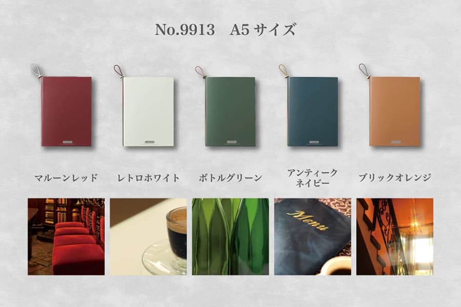 本体のカラーは、レトロな喫茶店のようなシックで落ち着いた色合いをイメージした、マルーンレッド、レトロホワイト、ボトルグリーン、アンティークネイビー、ブリックオレンジの5色が用意され、本体と丸ゴムの配色を変えたバイカラーデザインも特徴となっている。