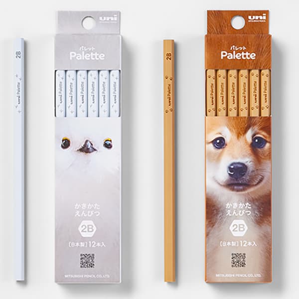 「uni Palette」は、大人っぽいいニュアンスカラーとして、アイボリーとピスタチオの2色をラインアップ。アイボリー、ピスタチオは、ファッションや雑貨のようなテイストを取り入れており、"かきかたえんぴつ"でありながらさりげなく個性を表現できるデザインに仕上がっている。また、パッケージと鉛筆軸に可愛い動物の画をあしらったデザインのモデルも用意。用意した「もふエナガ」、「シバイヌ」の2柄は、子どもたちに人気の動物であるシマエナガと柴犬をモチーフにしている。パッケージには顔を、鉛筆軸には足跡がプリントされており、無地柄鉛筆でありつつかわいらしいデザインとなっているのがポイントといえよう。