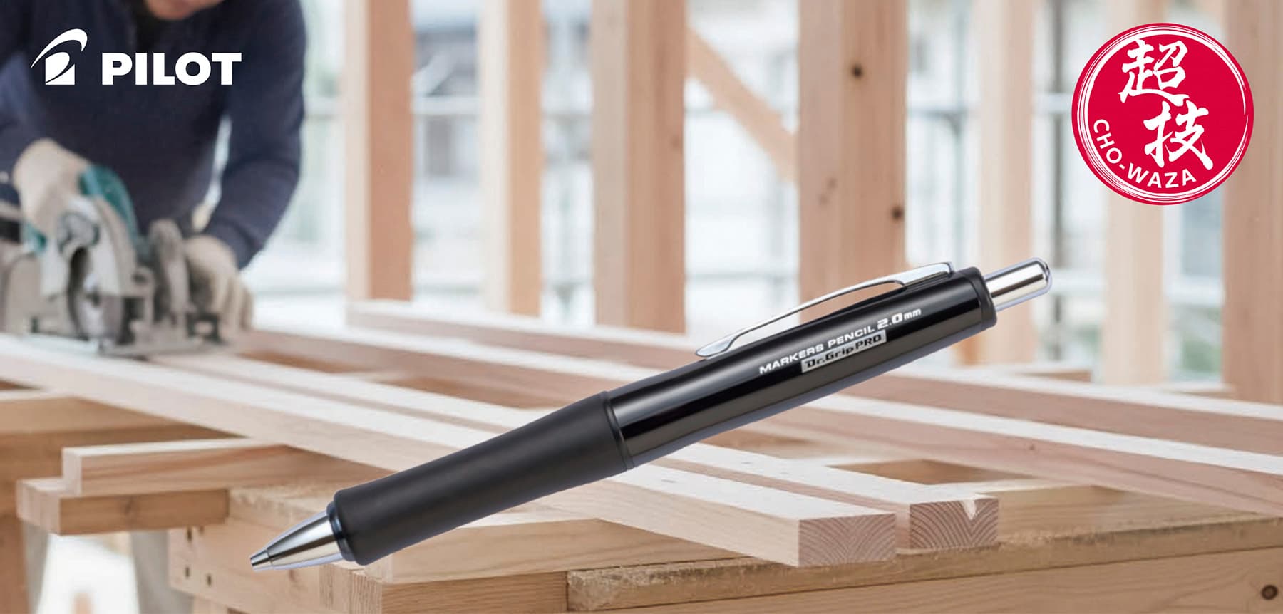 今回発売する建築用シャープペンシル「MARKERS PENCIL 2.0mm Dr.Grip PRO」は、1991年の発売以来、疲れにくい筆記具として長年愛用されてきた"ドクターグリップ"シリーズのボディをベースに、建築現場における木材などへのマーキング用途をはじめ、現場における様々なニーズに対応できるよう、各部をブラッシュアップしたプロ用ツールとなっており、同社プロ向け筆記具「PILOT超技(CHO-WAZA)」シリーズとして展開する。