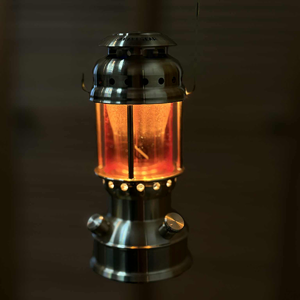 一方オイルモードは、シェードを外して、本体内部にオイルタンクをセットすれば、本格的なオイルランタンに早変わり。ゆらゆらと揺れる炎の灯りが、温かみと癒しの空間を演出してくれる。燃料にはパラフィンオイルを使用できるようにするなど、時間帯や用途、気分に応じて使い分けができるのが特徴のモデルとなっている。