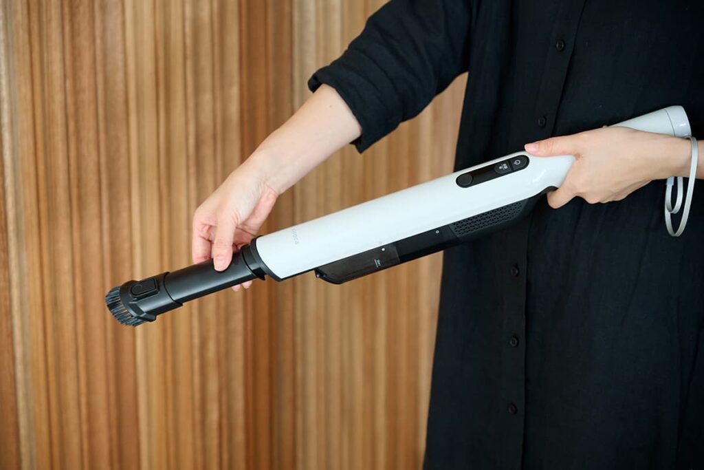 本体は、スティック状とハンディ状の2Way仕様になっていることから、掃除する場所によって、使い分けることで、この一台で効率よく掃除をすることが可能となっている。