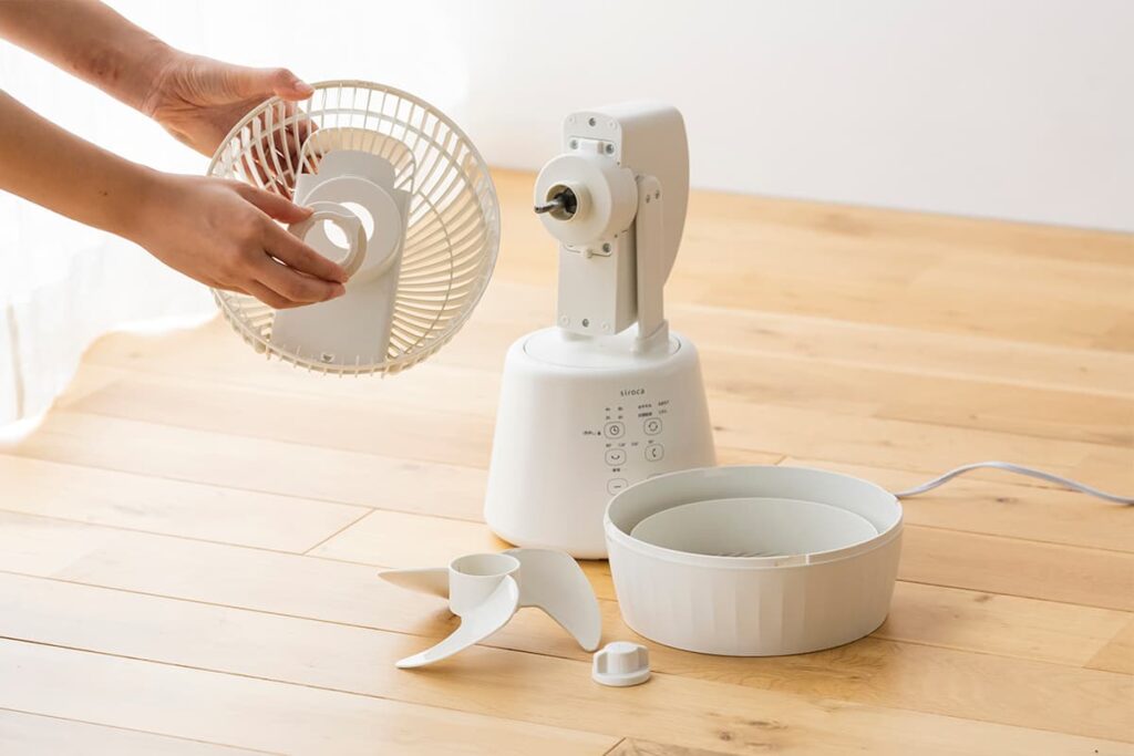 ホコリなどの汚れが溜まりがちな扇風機やサーキュレーターは、お手入れのし易さも大事なポイント。ホコリをそのままにしておくと、羽根の軸部分の動きを悪くするだけでなく、最悪、故障を引き起こす原因にもなりかねない。そこで、敵的なお手入れが必要なのだが、本製品は工具不要で前後のガードや羽根を取り外しが可能なため、外せるため汚れが気になるときに手軽にお手入れができて、衛生的に使えるようになっている。