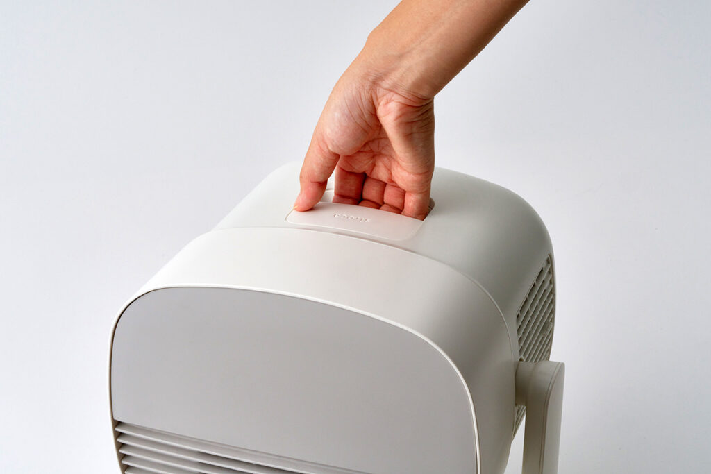 使用時は、本体の傾きや強い衝撃を検知すると、自動で運転を停止する、転倒・振動検知機能や、運転中に本体に布などがかかってしまい、異常な温度上昇を検知した際に自動で運転を停止する異常加熱検知機能を搭載。安瀬面にも配慮した設計になっているので、安心して使うことができる。