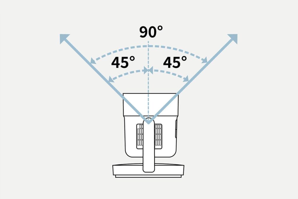 夏場は、エアコンに背を向けて設置し、上下左右、立体的に首を振る「3D 首振り」で床に溜まった冷気を部屋全体に行き渡らせることで、冷房効率を高めることができる。