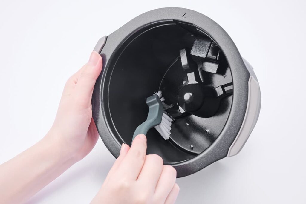 バスケットの内側にはセラミックコーティングが施されており、ニオイが付きにくく汚れも落としやすい仕様にしている。クリーニングモードを搭載するほか、主なパーツは水洗もできる。さらに、付属の"お手入れブラシ"で細かな部分もキレイにすることが可能となっている。